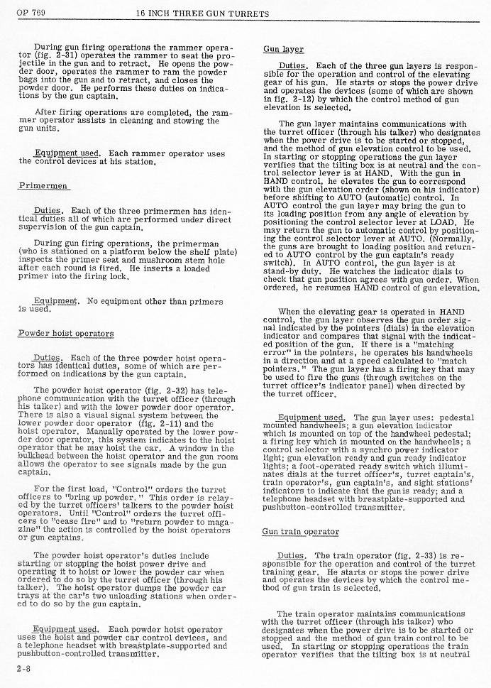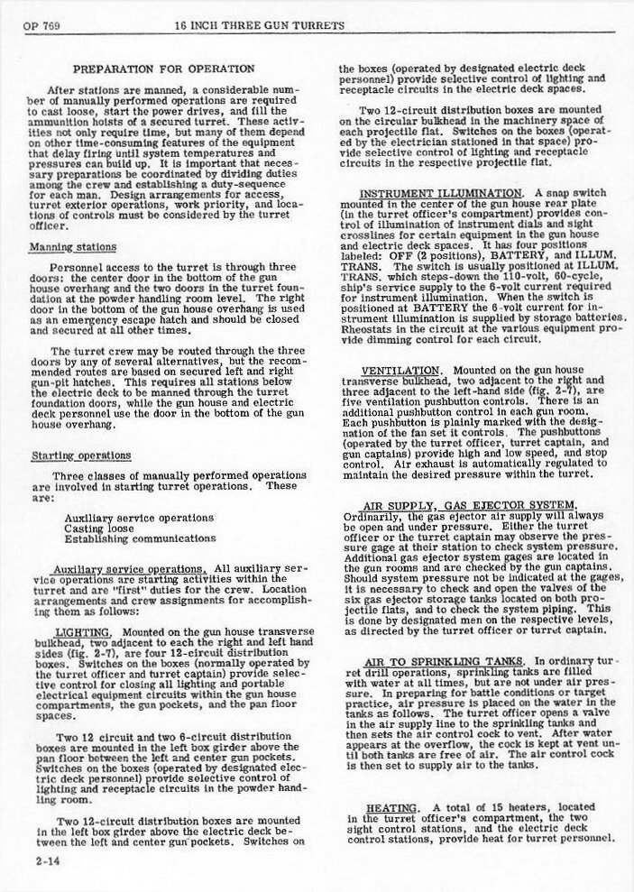 | IOWA CLASS BATTLESHIP PICTURES NAVAL ORDNANCE PAMPHLET OP 769 TITLE AND FORWARD CHAPTER 2 TURRET OPERATION |