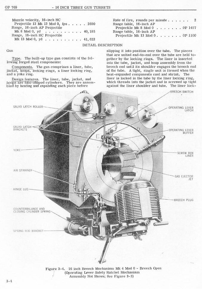| IOWA CLASS BATTLESHIP PICTURES NAVAL ORDNANCE PAMPHLET OP 769 TITLE AND FORWARD CHAPTER 3 GUN ASSEMBLIES |